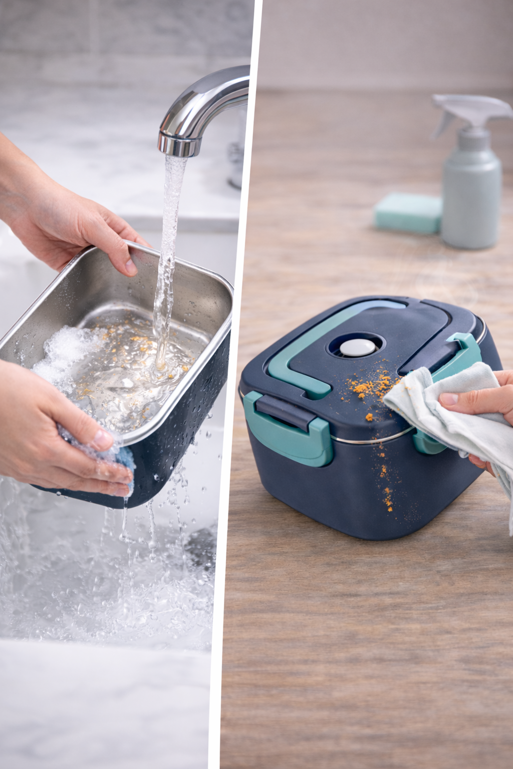 A kivehető belső rozsdamentes acél edények könnyen tisztíthatók, a külső felület egy mozdulattal letörölhető.
